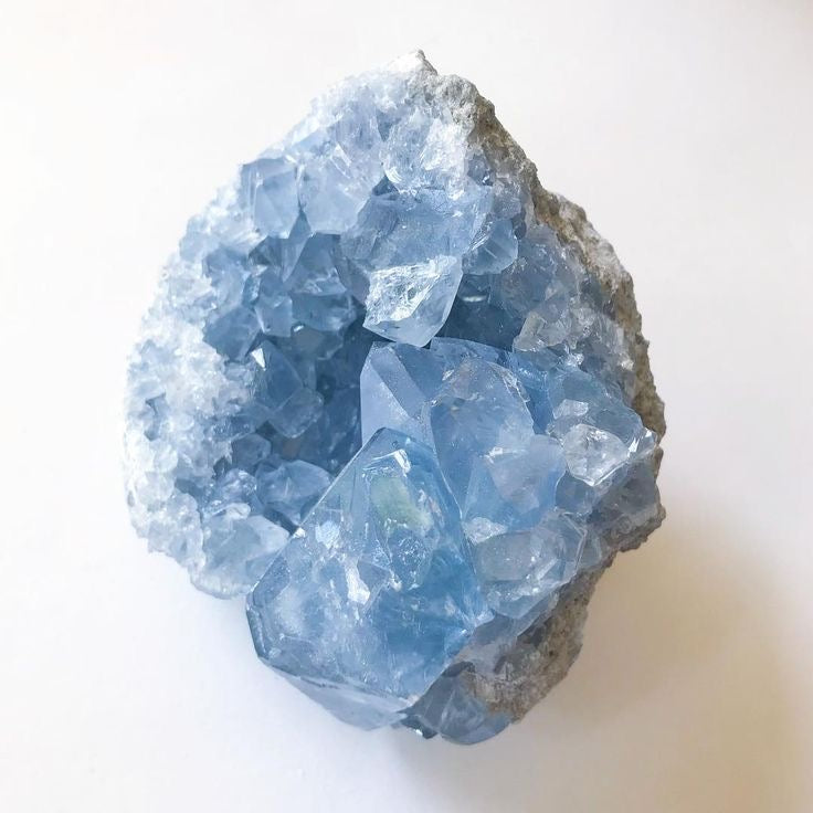 Avoid Water Contact: Angelite is sensitive to water, which can cause discoloration or even damage. Avoid soaking or washing it directly with water. Gentle Cleaning: Use a soft, dry cloth to gently wipe the surface of the crystal. Avoid using chemicals or abrasive cleaning products. Energetic Purification: To recharge and energetically purify Angelite, you can place it near crystals like selenite or clear quartz. You can also use methods such as smudging with sage or palo santo to cleanse the crystal's energy. It is important to handle Angelite jewelry with care, as this crystal is quite delicate.