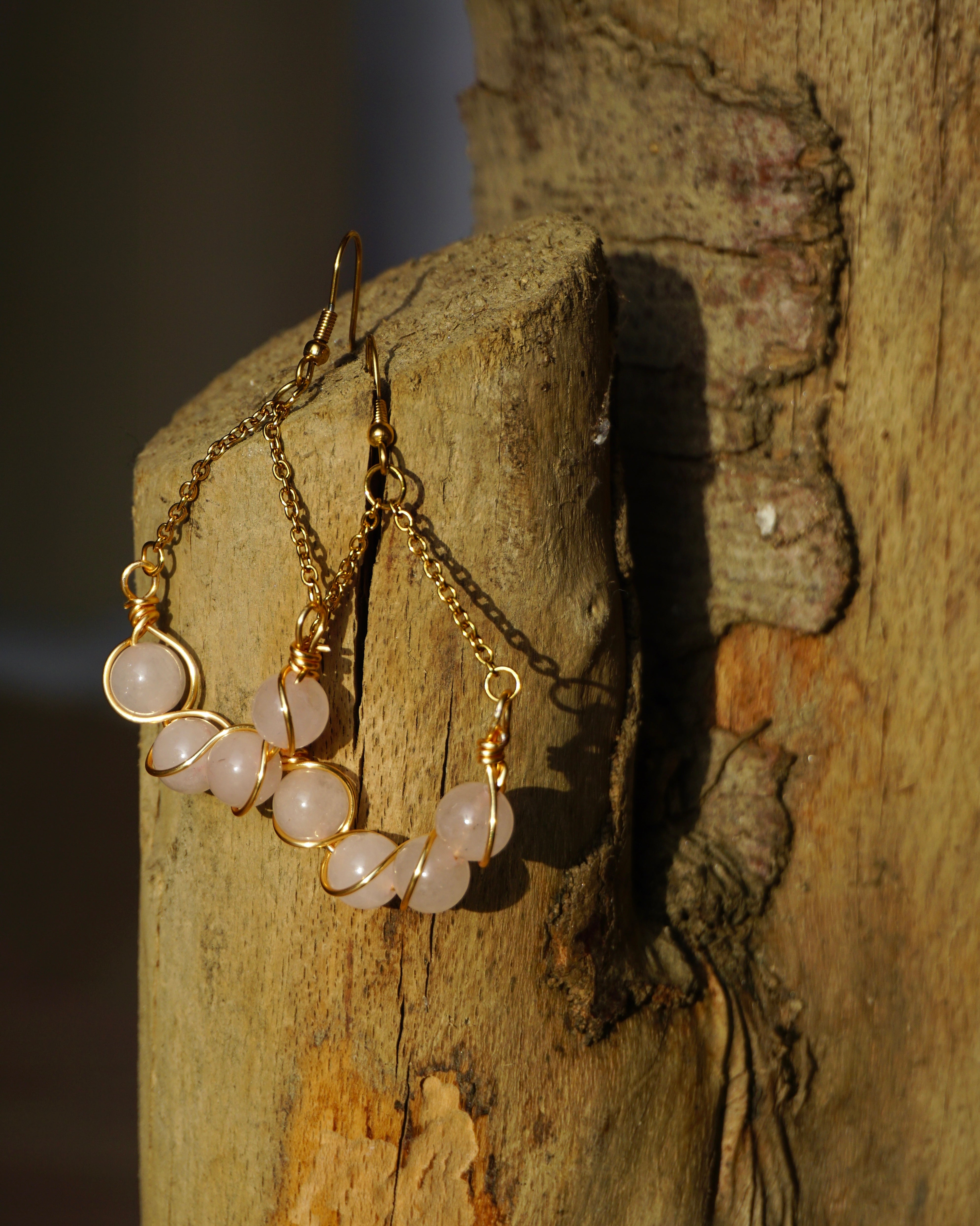 Aurora Earrings – Stainless Steel & Rose Quartz Earrings