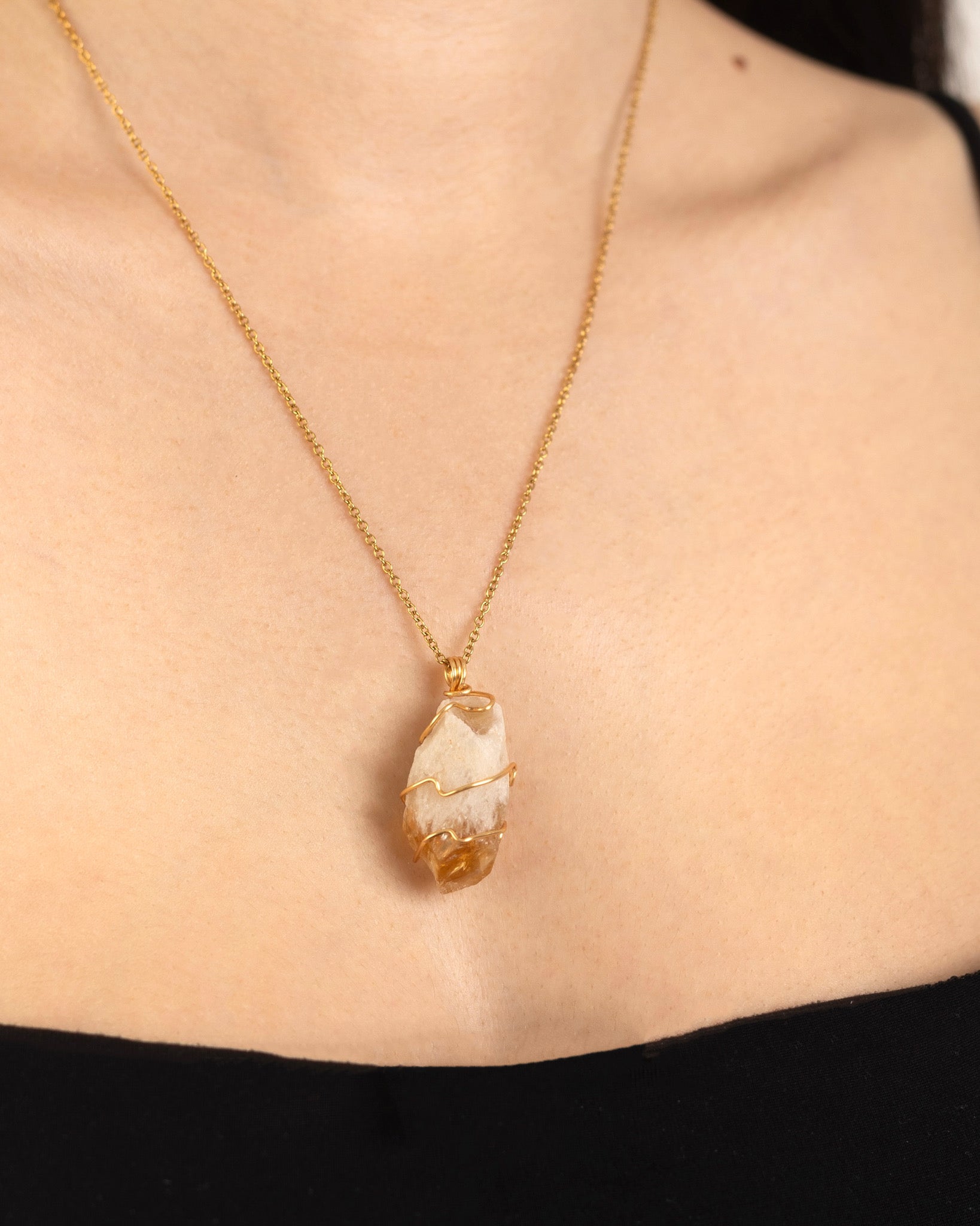 Unleash positive energy with our Success Necklace. This handmade piece features a raw citrine stone, wrapped in durable stainless steel, symbolizing abundance and joy. Each Success Necklace is uniquely crafted to highlight the natural beauty of citrine, making it a perfect accessory for those seeking optimism and vitality in their lives.