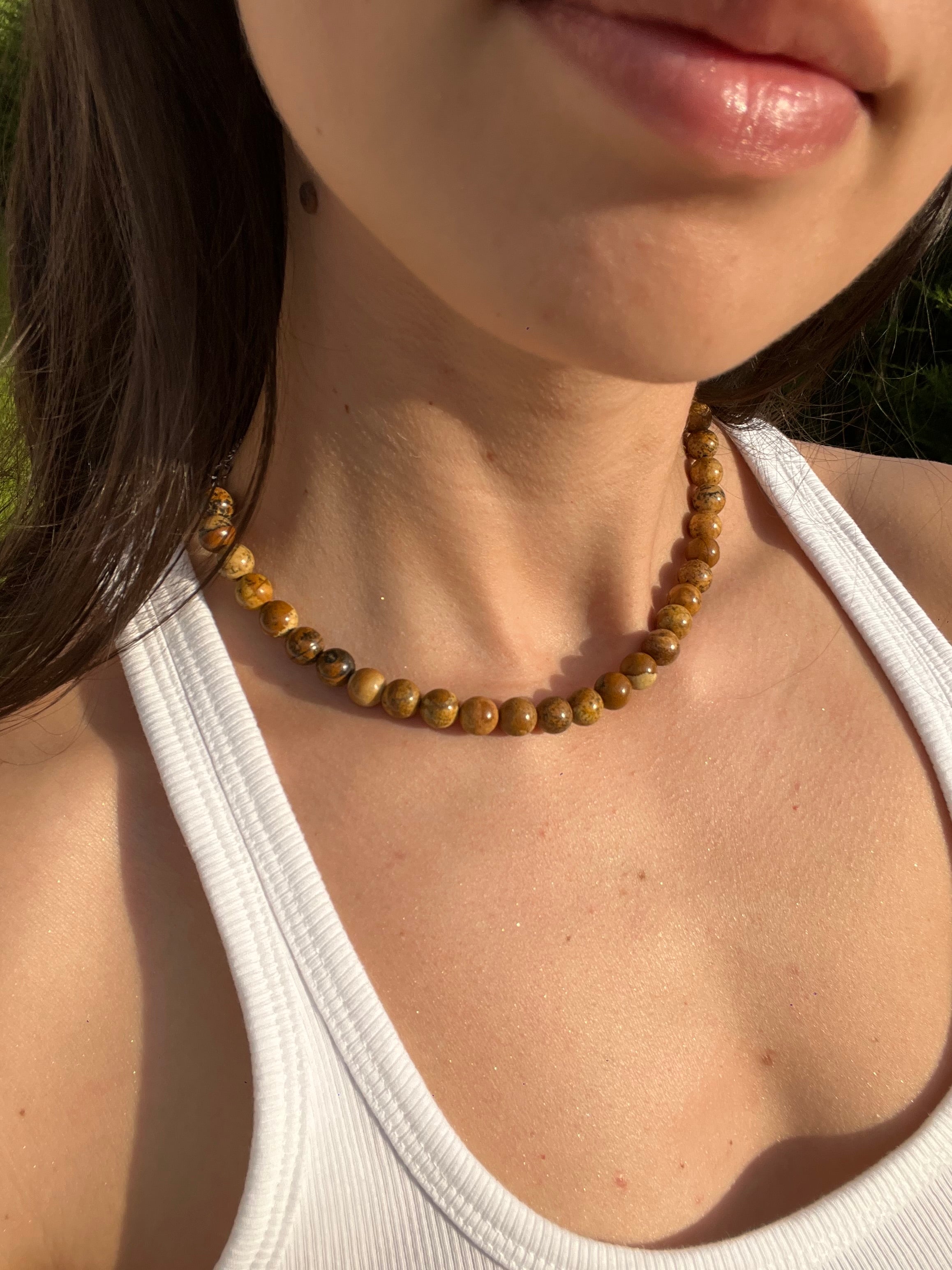Desert Soul is crafted with natural Picture Jasper, a gemstone that carries the grounding energy of earth and the calm perspective of distant horizons. Its warm, sandy tones and subtle textures evoke canyon trails, desert winds, and ancient silence.