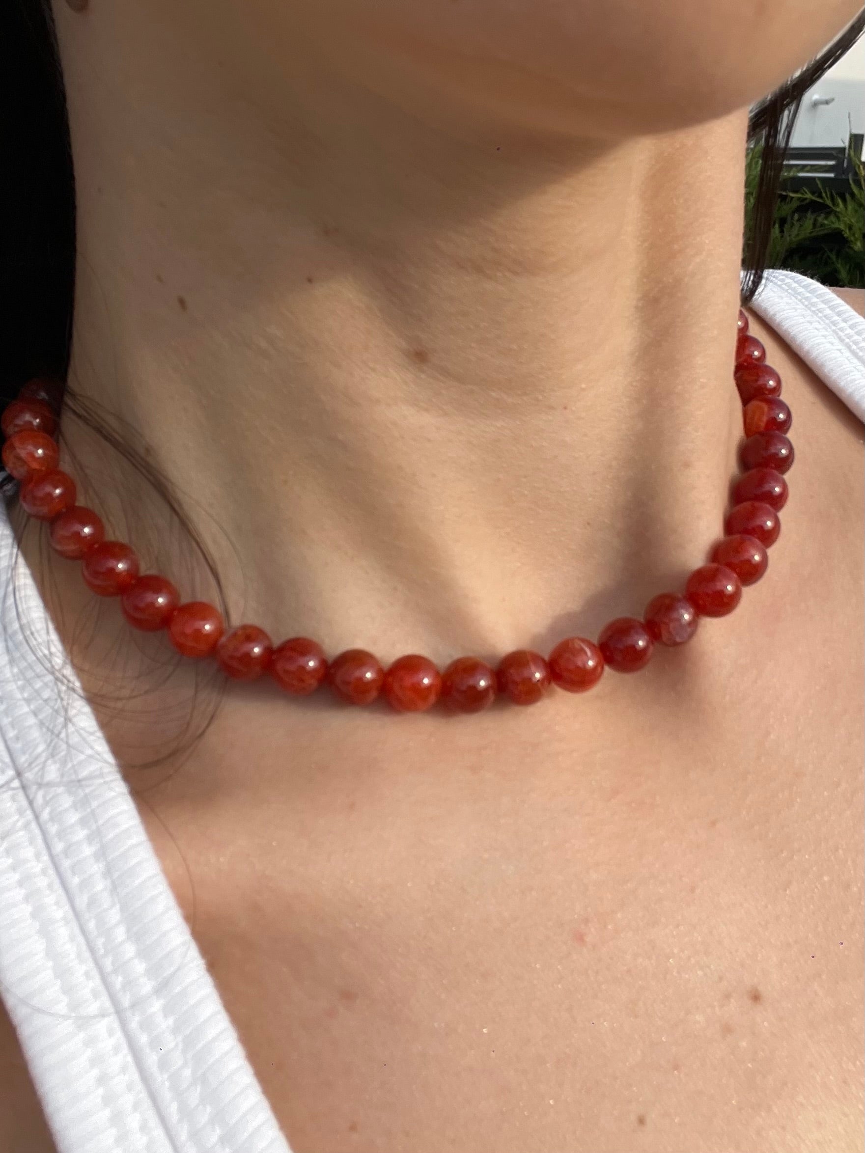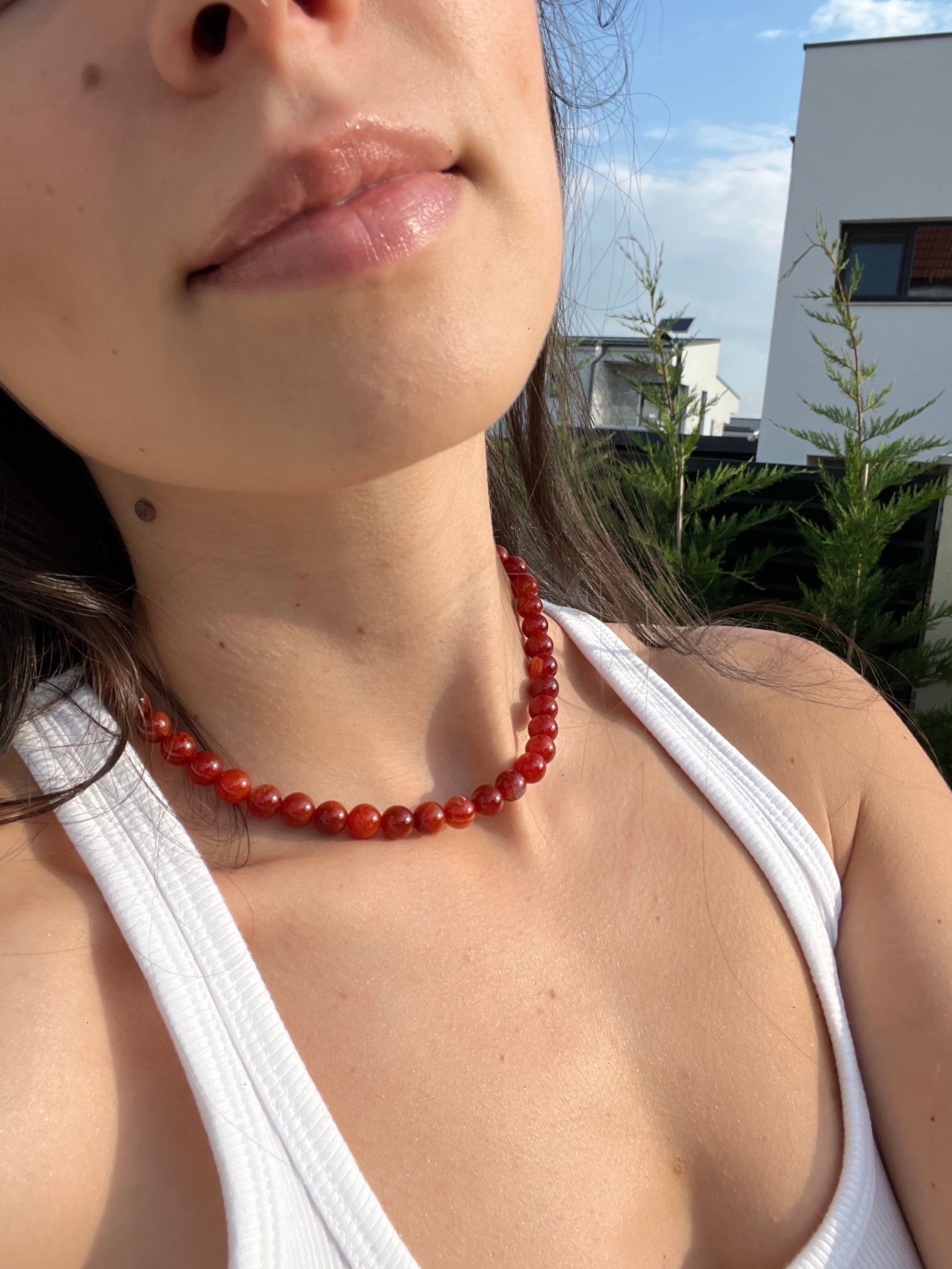Dragon Pulse is a handcrafted necklace made with deep red Dragon Vein Agate, a gemstone that symbolizes clarity, grounding, and transformation. The natural veining of the stone evokes lightning — fierce and alive, yet balanced by its calming energy.