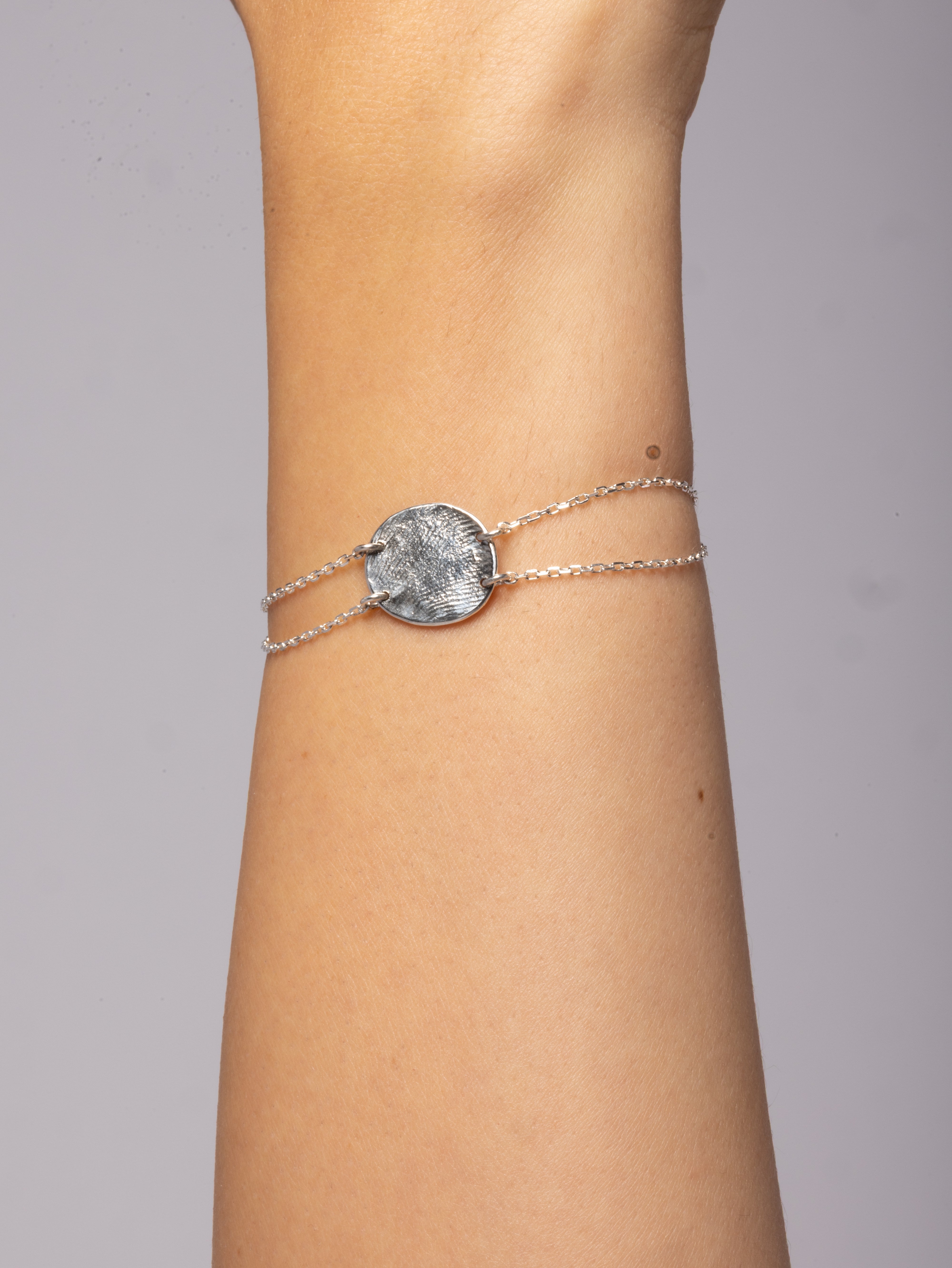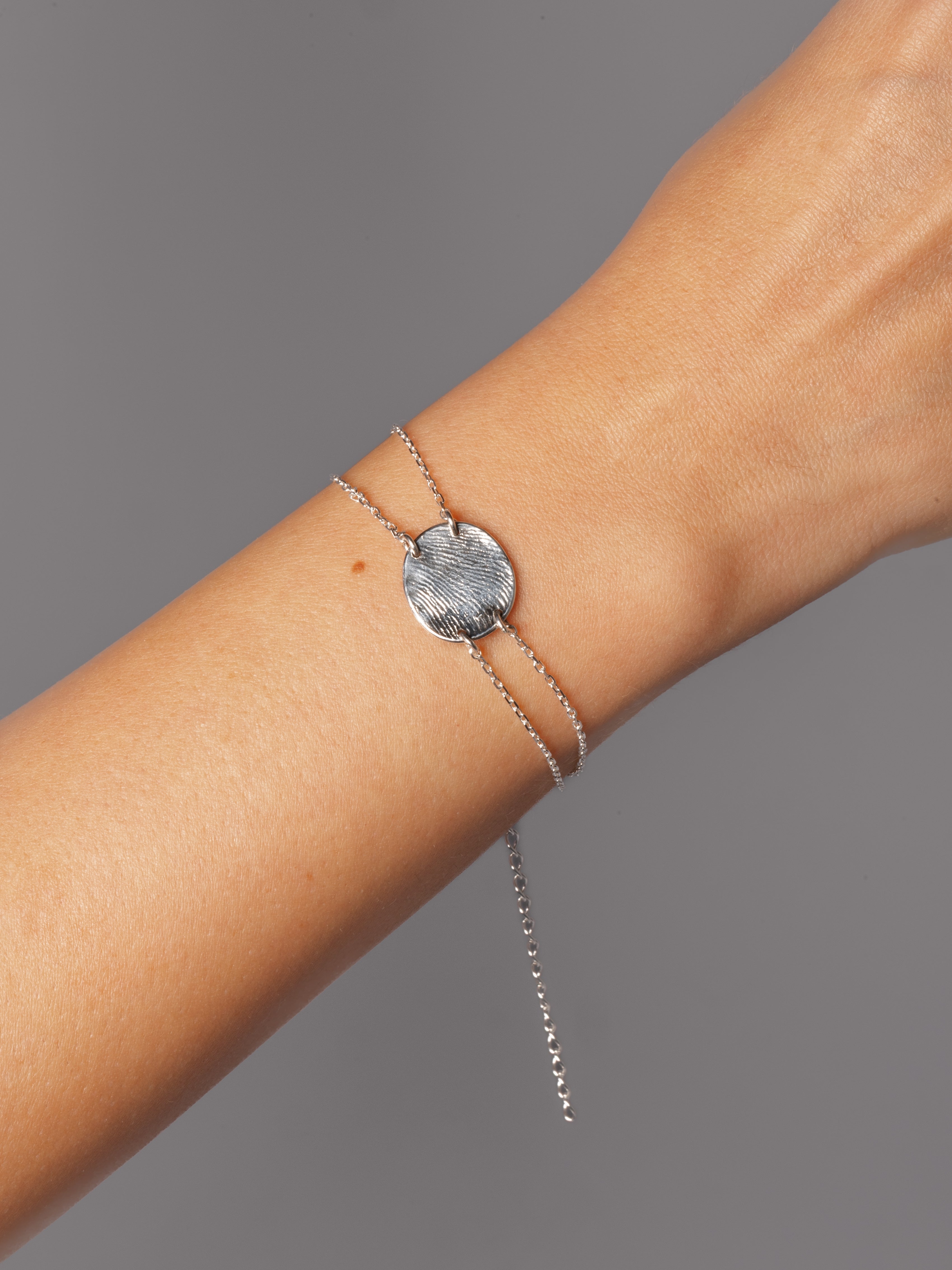 FINGERPRINT BAND RING îți permite să transformi o amprentă reală într-un inel tip bandă, modern și discret, dar cu o semnificație personală profundă. Textura naturală a amprentei este redată fidel, fie că provine de la o persoană dragă sau de la animăluțul tău, rezultând o piesă minimalistă, dar încărcată de emoție.