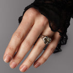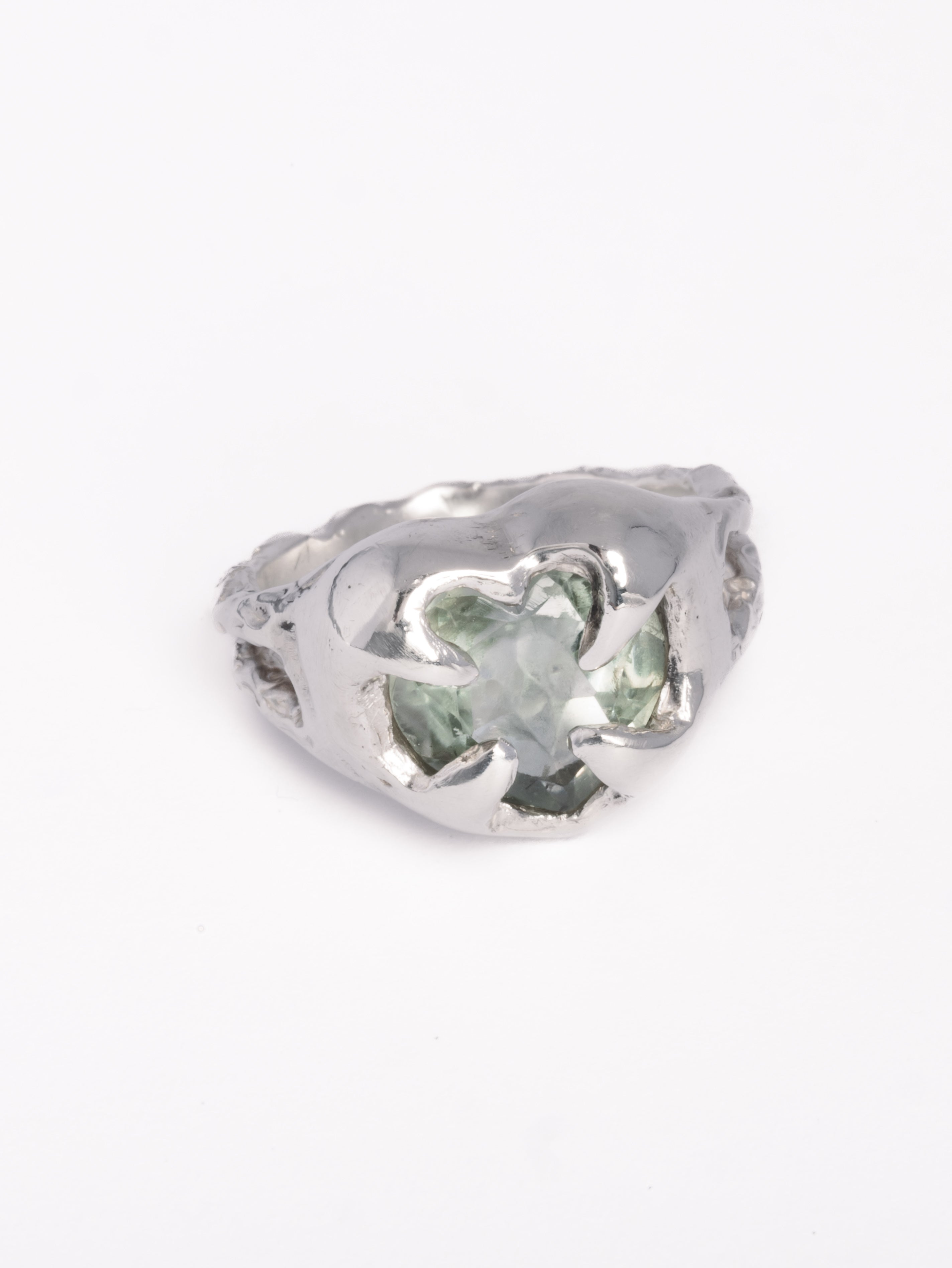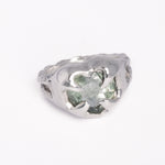 GAIA RING este un inel sculptural din argint 925, creat manual și inspirat din forțele naturii. Designul organic îmbrățișează piatra verde într-o montură fluidă, asemănătoare rădăcinilor sau frunzelor care cresc firesc în jurul luminii. Fiecare inel este turnat și finisat manual, rezultând într-o piesă unică, cu energie și prezență.