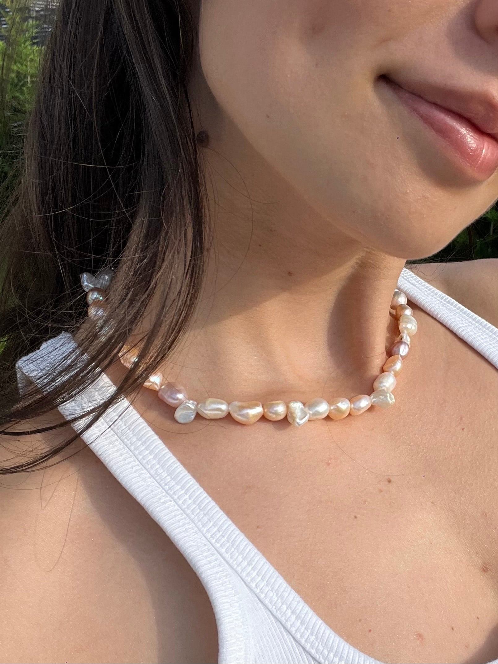 The necklace is designed to sit gently along the neckline, while the bracelet is adjustable for the perfect fit.