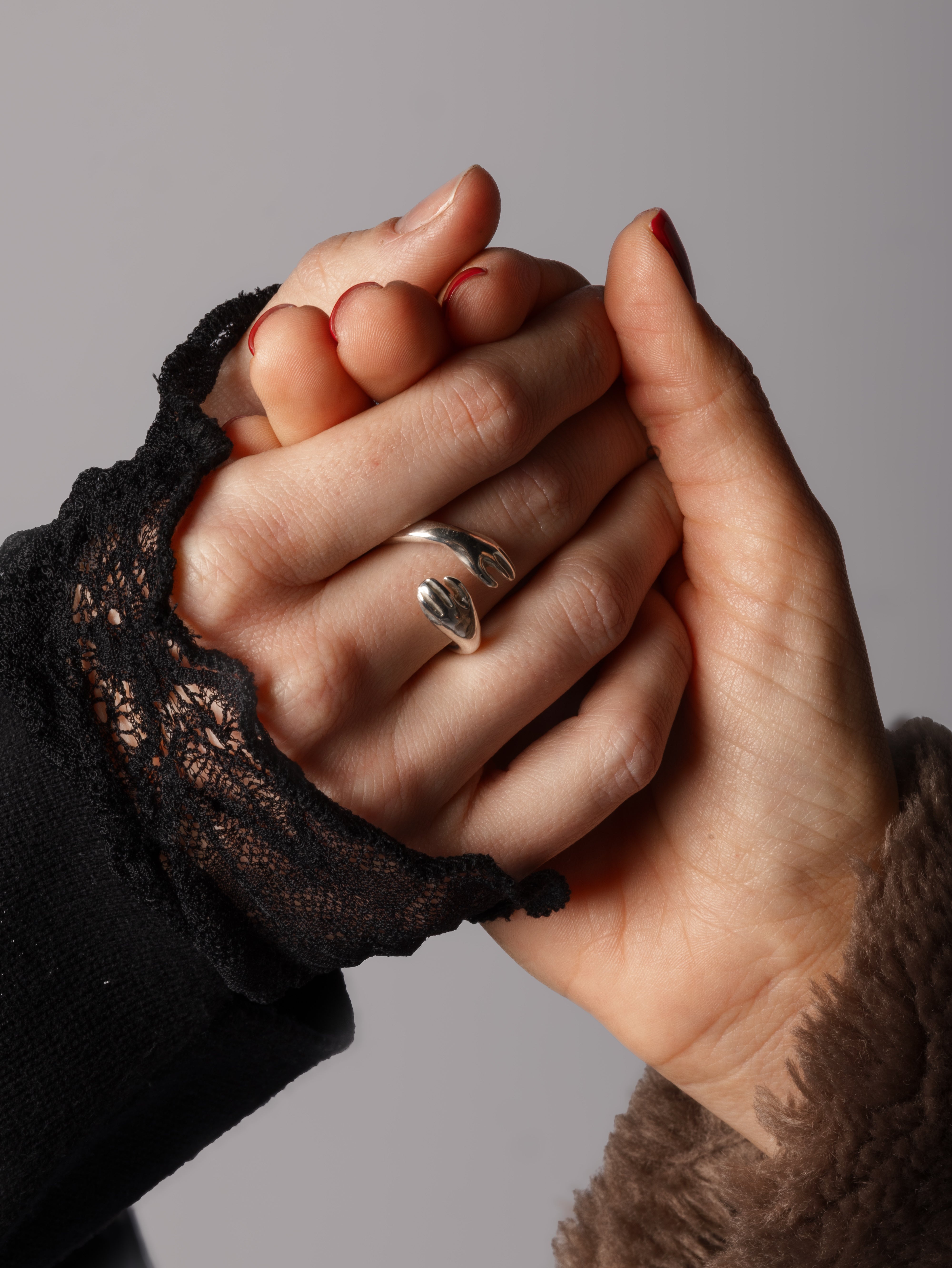 “I See You” Ring este un inel statement din argint 925, creat manual și modelat în forma a două mâini care se întâlnesc — un simbol al conexiunii reale și al prezenței. Ușor ajustabil și confortabil de purtat, este bijuteria care transmite un mesaj simplu, dar puternic: te văd, te înțeleg, ești important(ă).