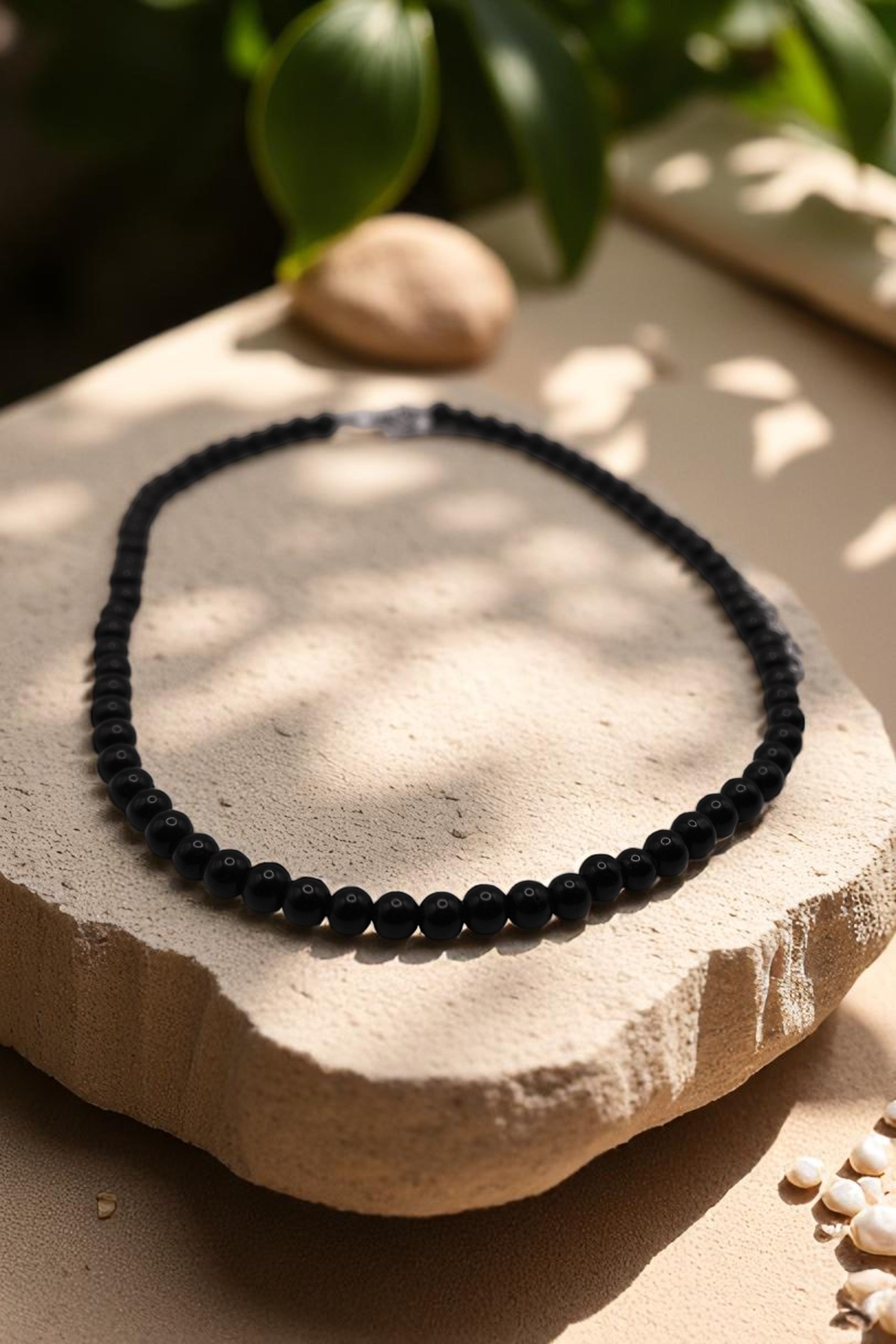 ✨ Materials: Black glass pearls, silver-tone stainless steel