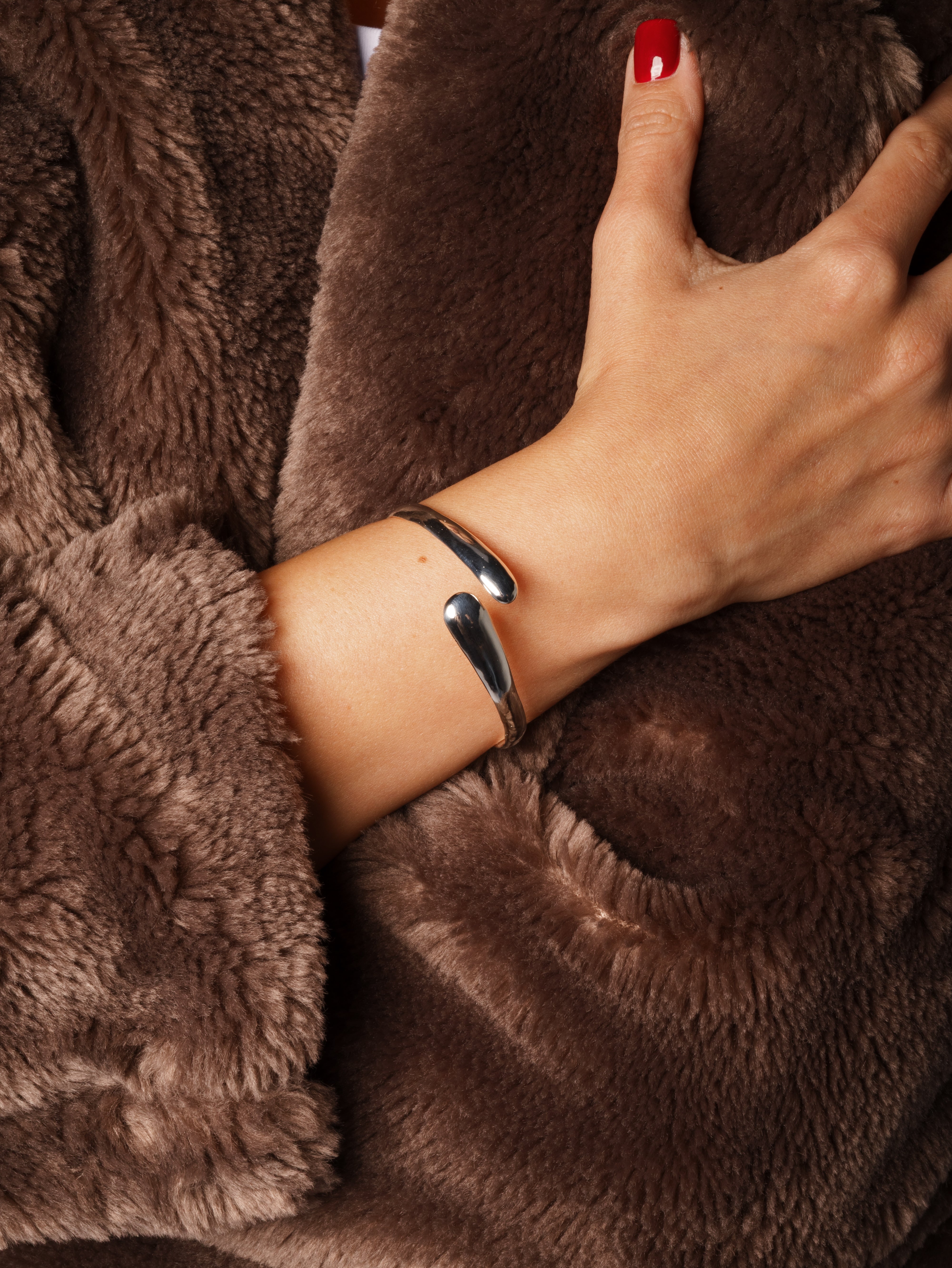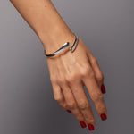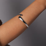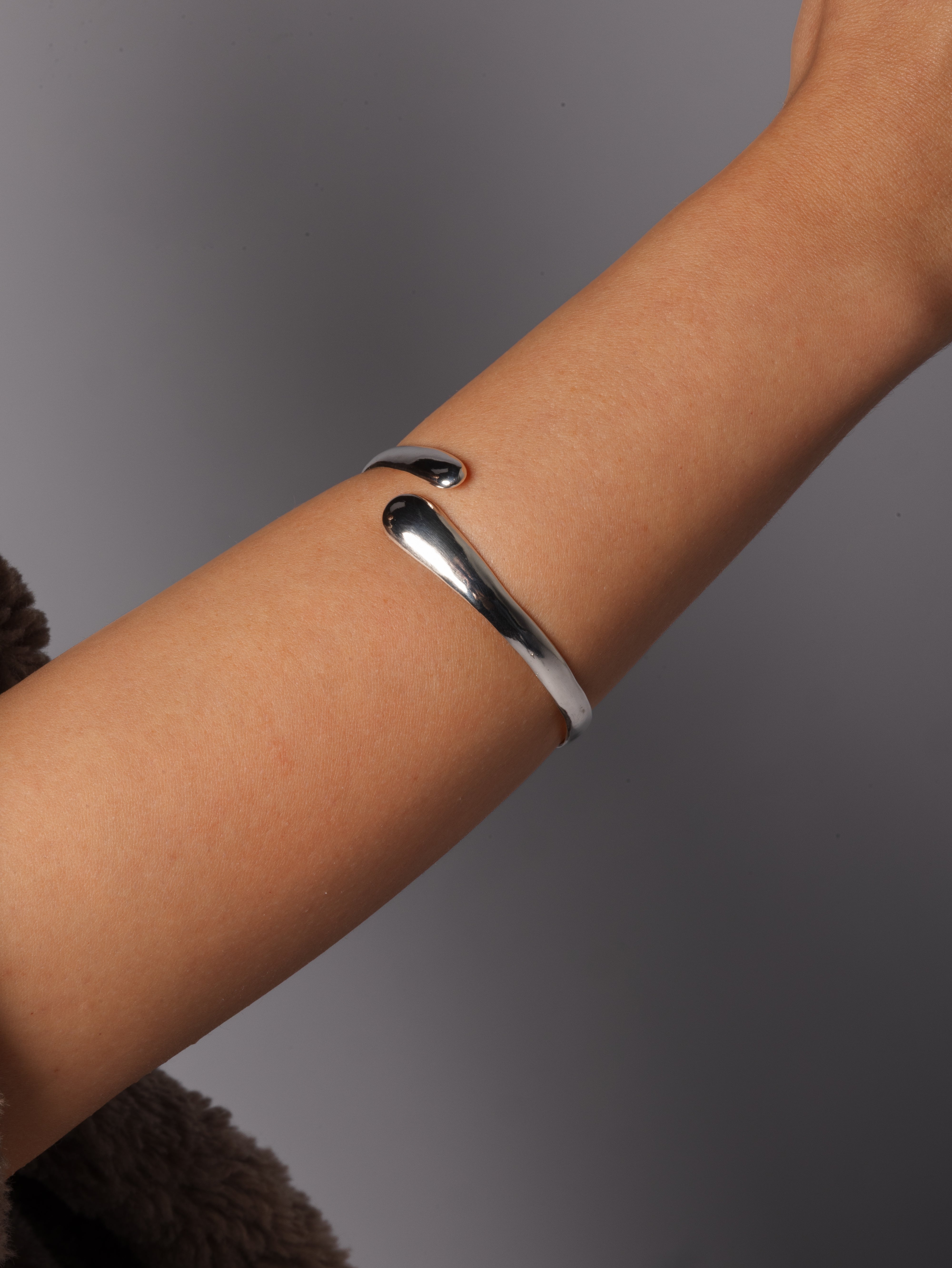 WAVE BRACELET este o brățară sculpturală din argint 925 masiv, creată pentru cei care iubesc liniile fluide și formele organice. Cu o greutate de aproximativ 21 g, oferă o prezență elegantă și solidă, fără a fi greoaie, iar designul deschis permite ajustarea pe încheietură pentru un confort optim.