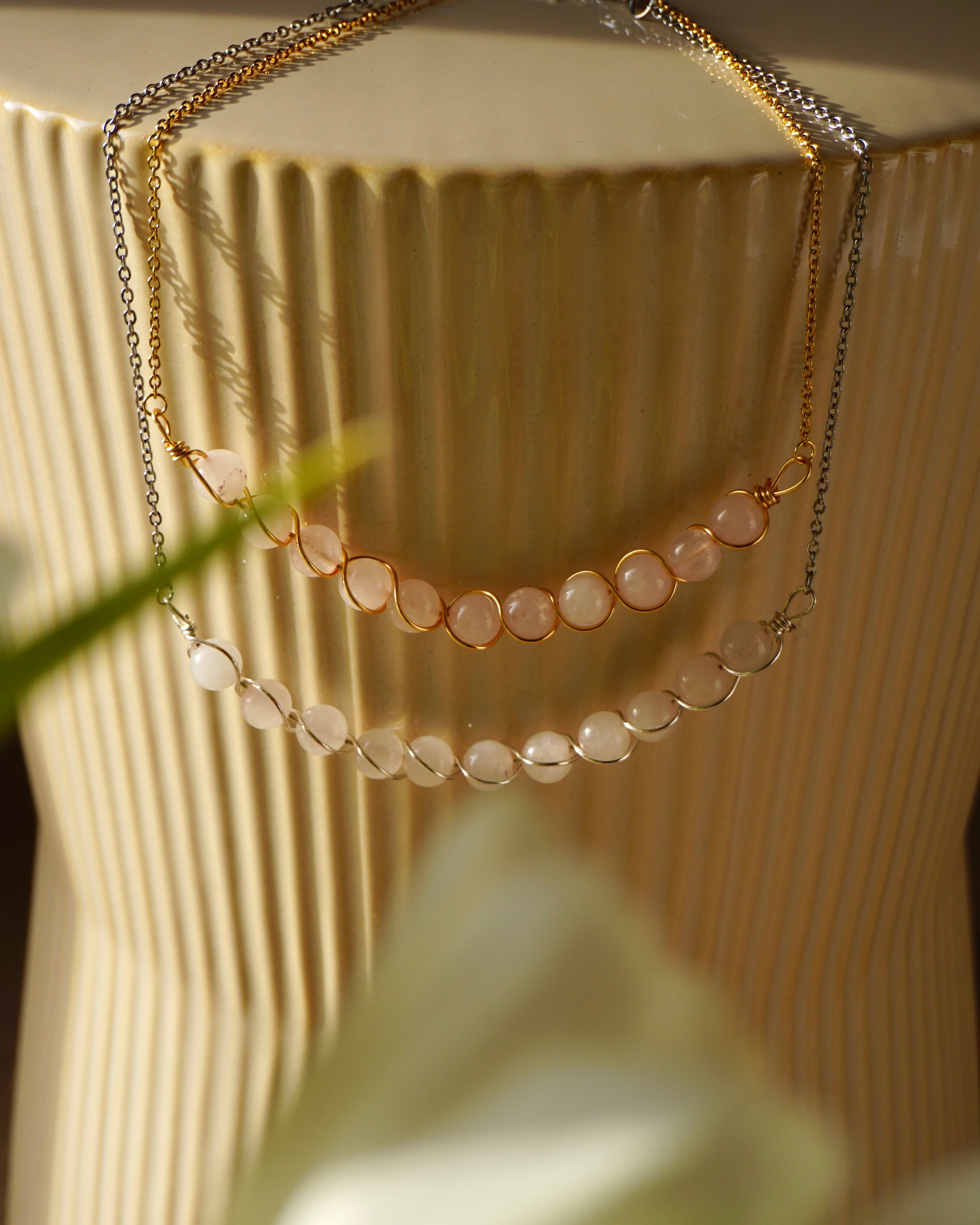 Colierul Aurora – Oțel inoxidabil & Cuarț roz