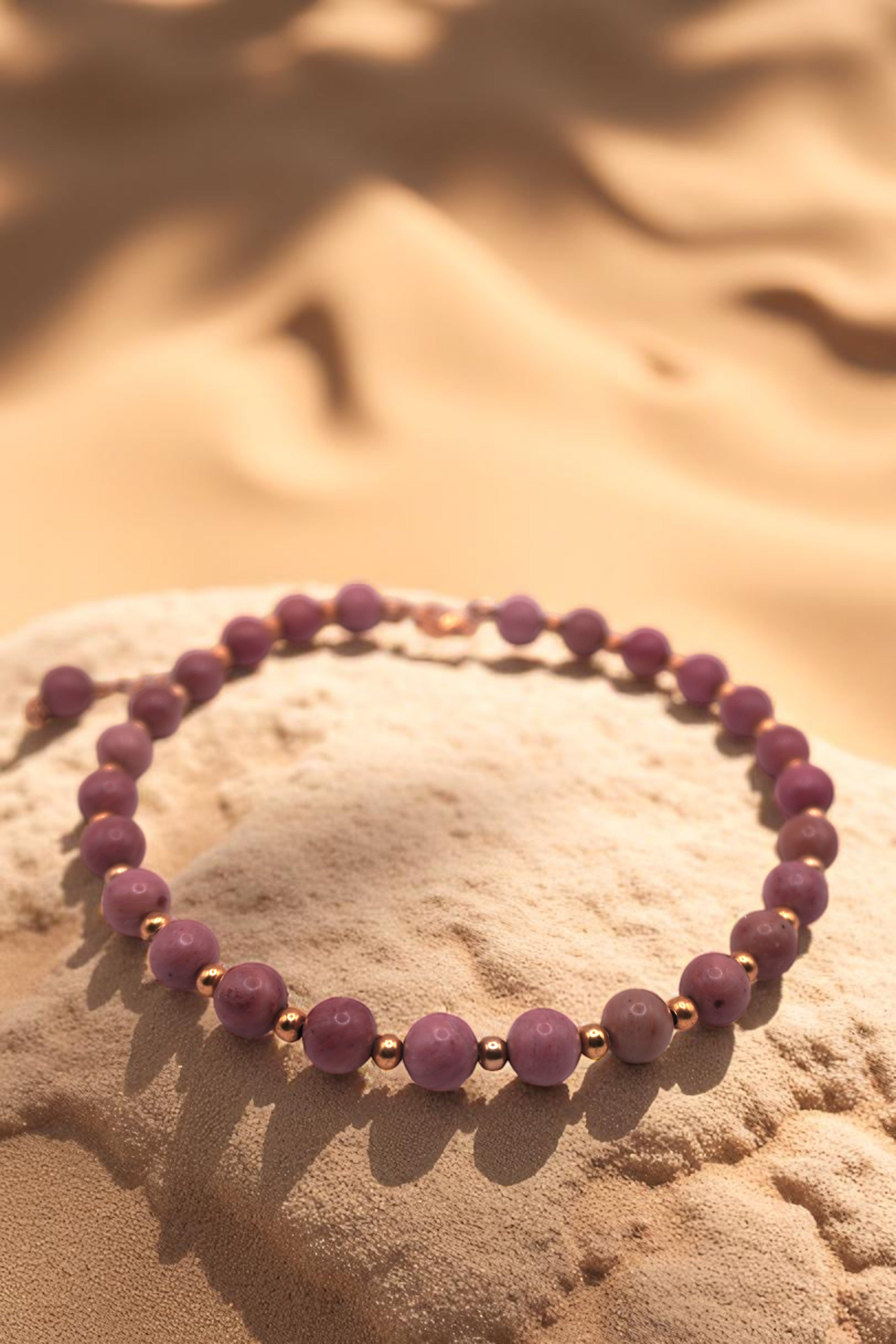 ✨ Materiale: Rhodochrosit, oțel inoxidabil auriu