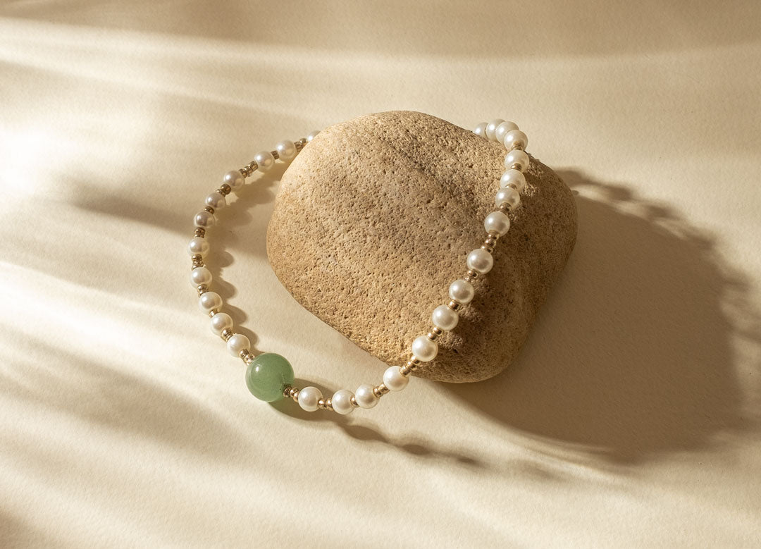- Material: Oțel inoxidabil, perle de sticlă, aventurin verde