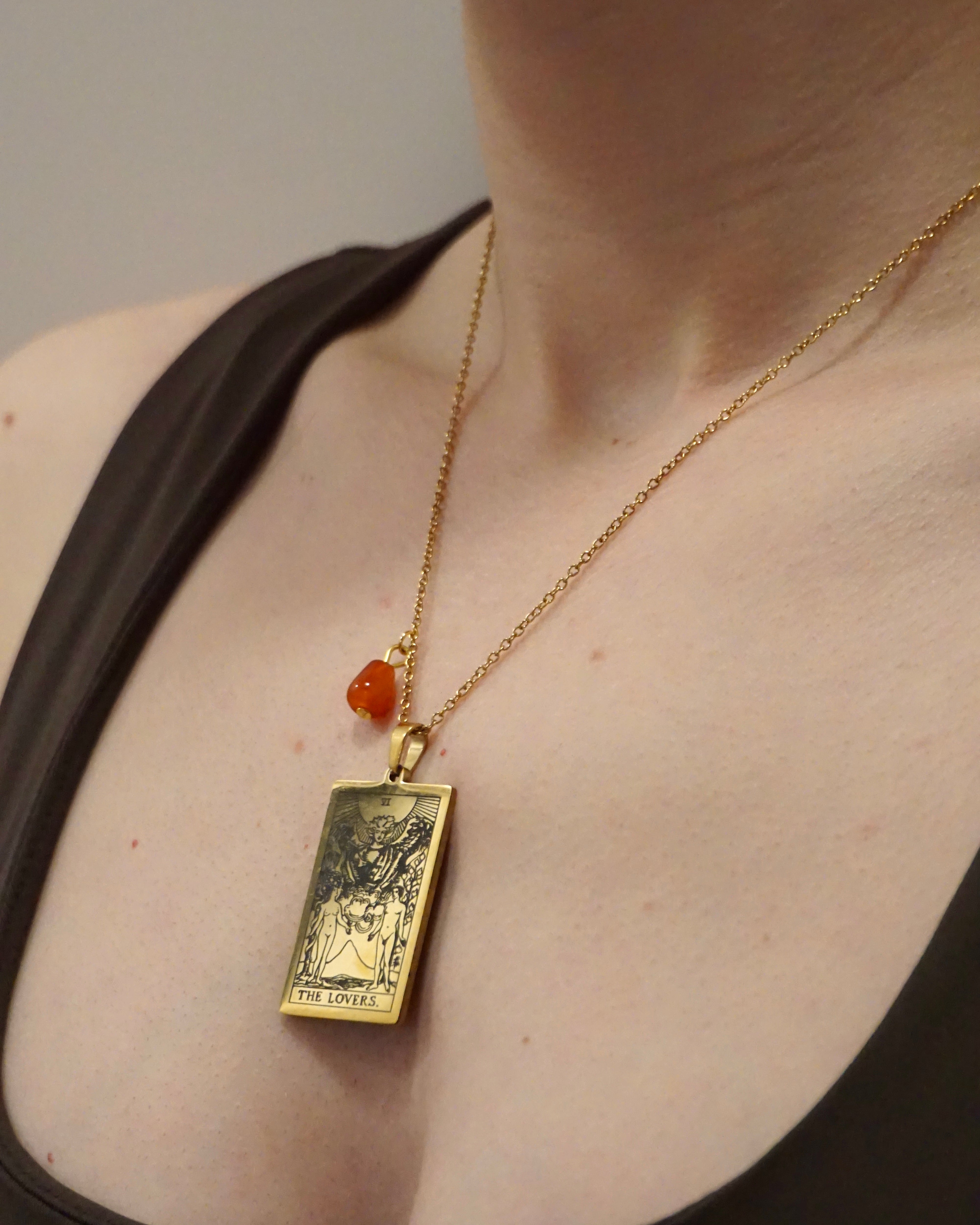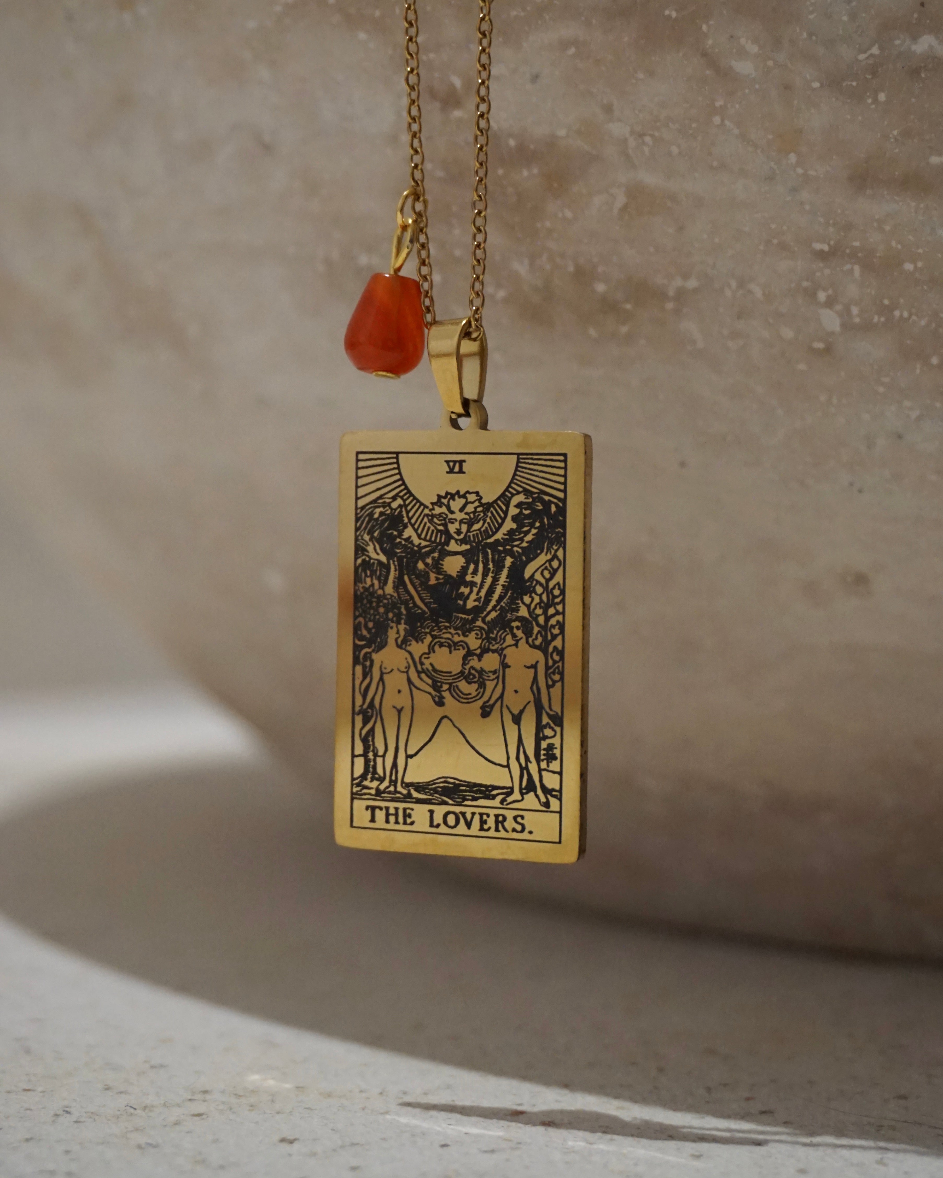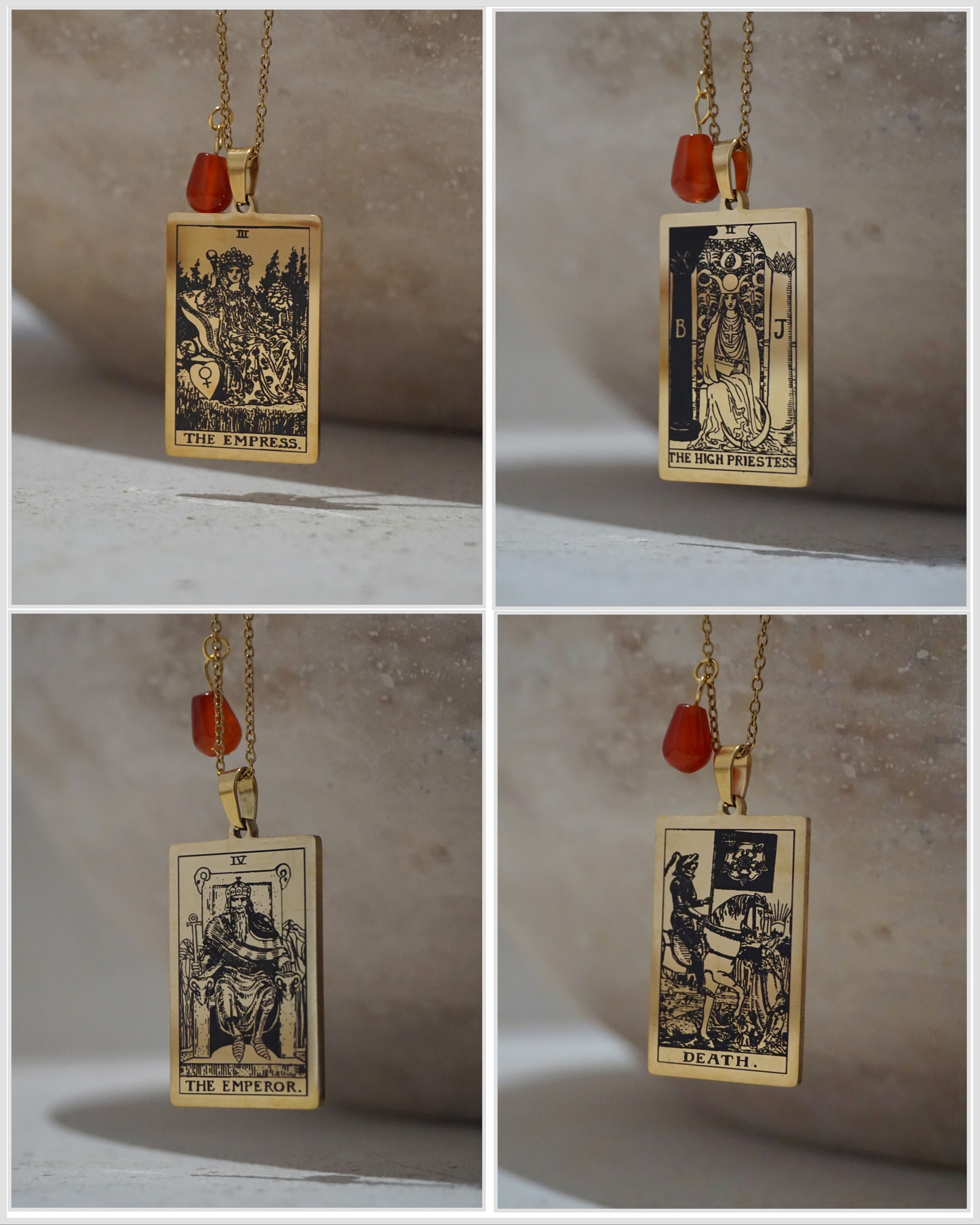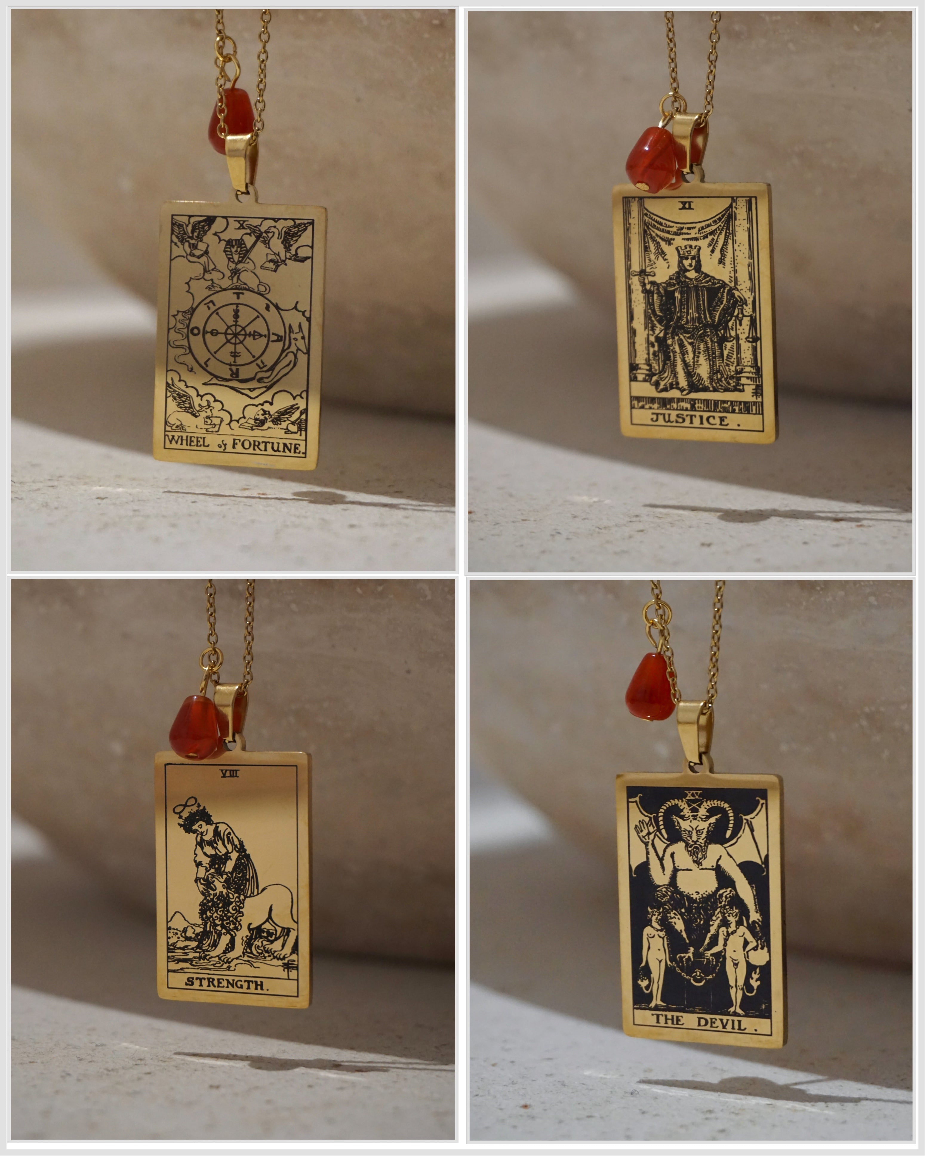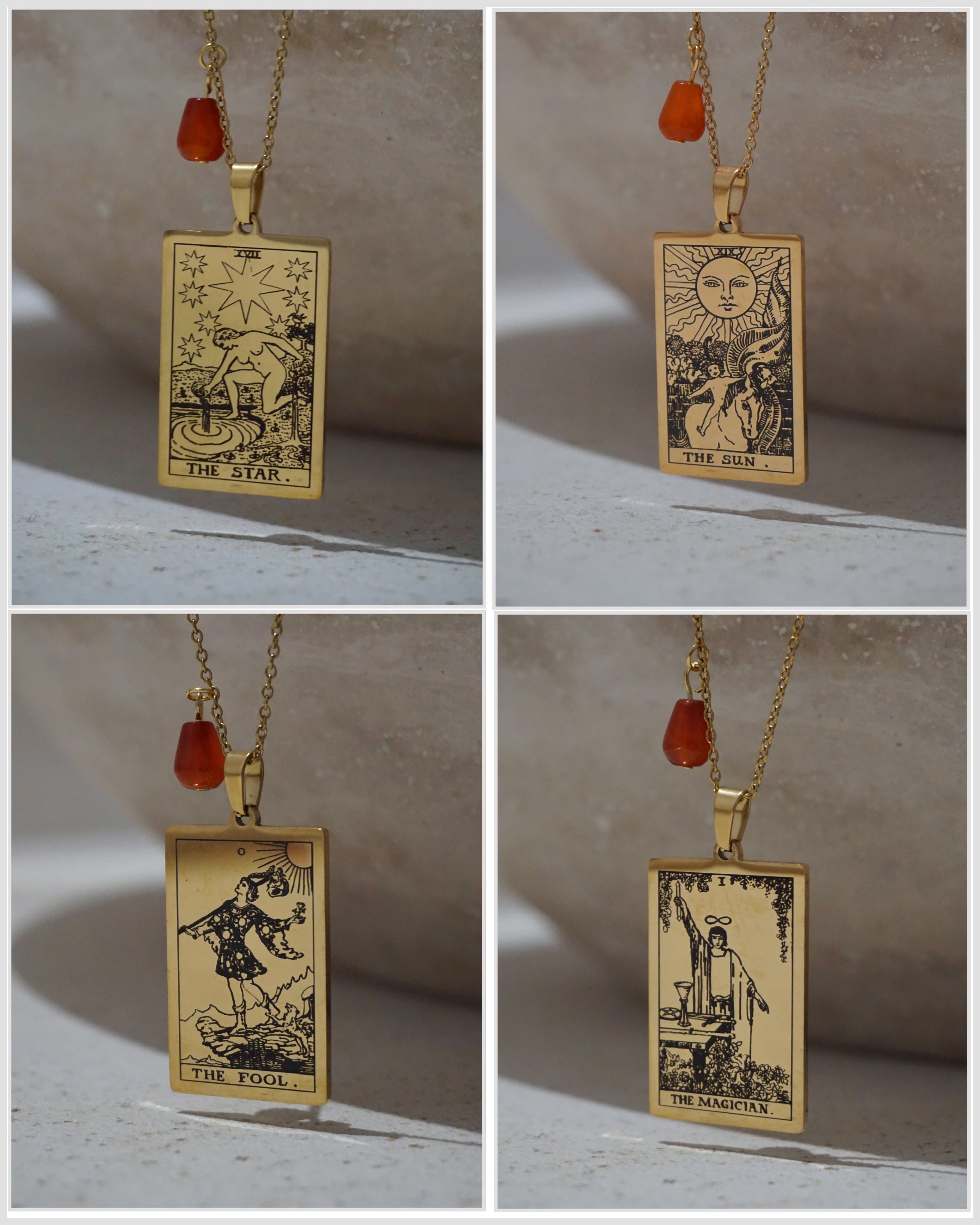 Colier Tarot – Oțel inoxidabil auriu & Cristal Carneol