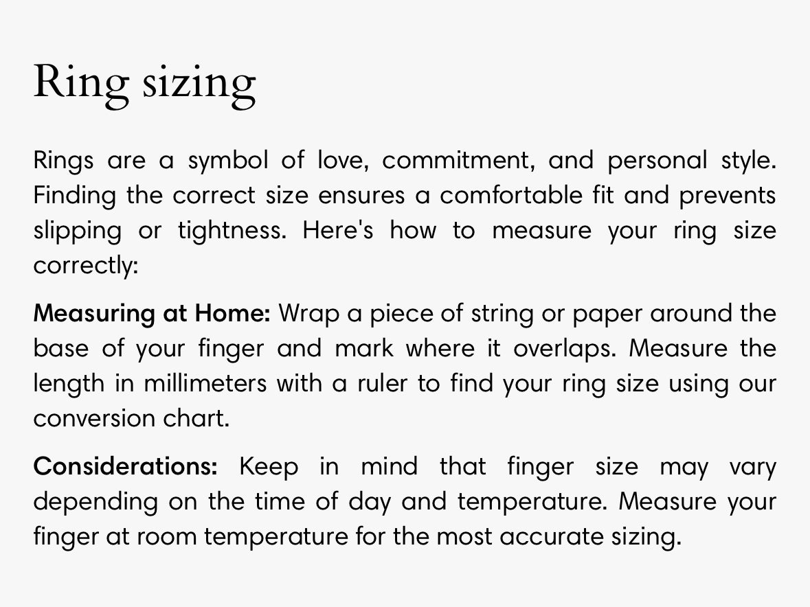 Pentru o măsurare cât mai precisă, recomandăm să mergi la un magazin de bijuterii pentru a afla mărimea corectă a degetului.