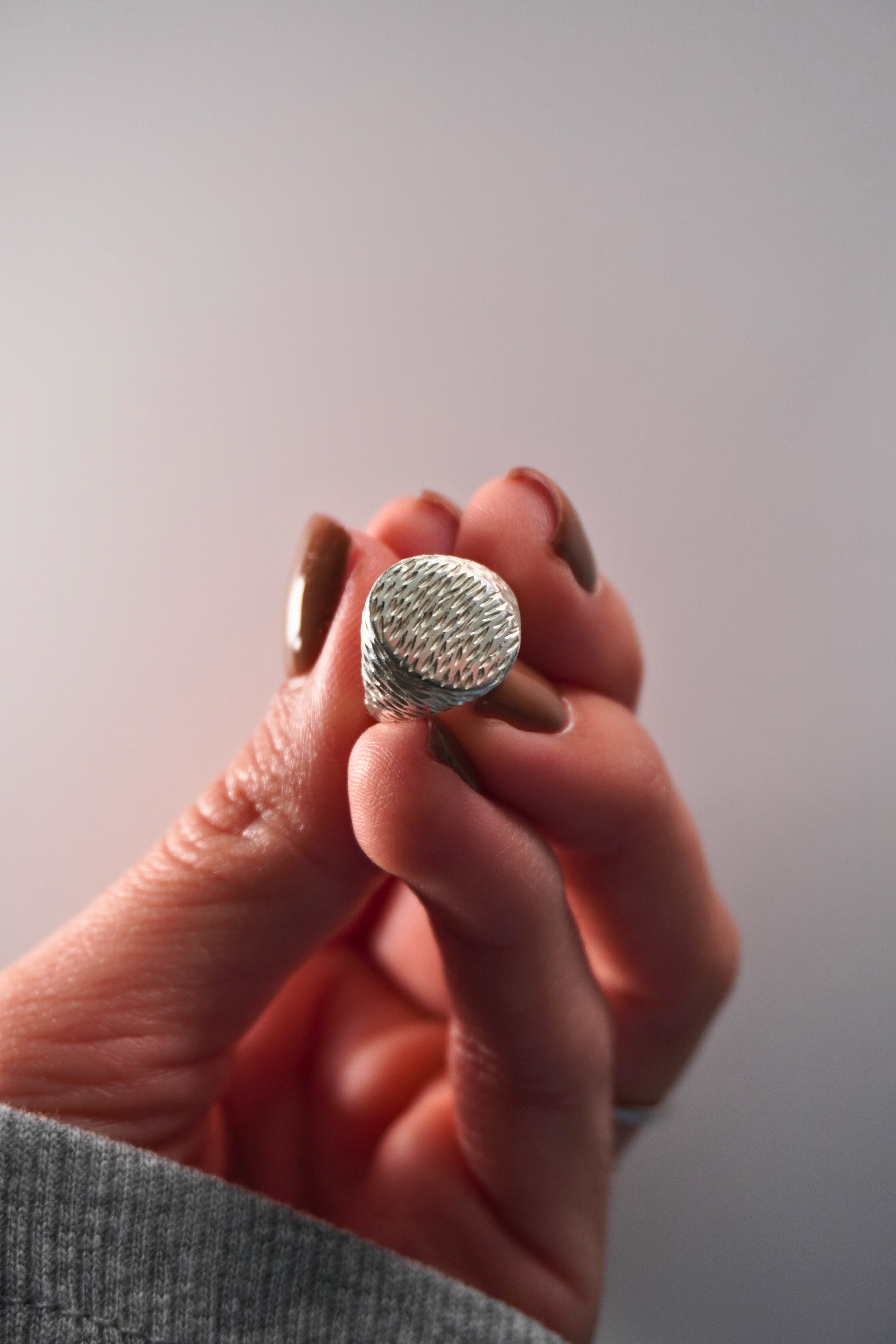 reat din argint 925, Zebra Signet Ring surprinde ritmul natural al texturii și al luminii.